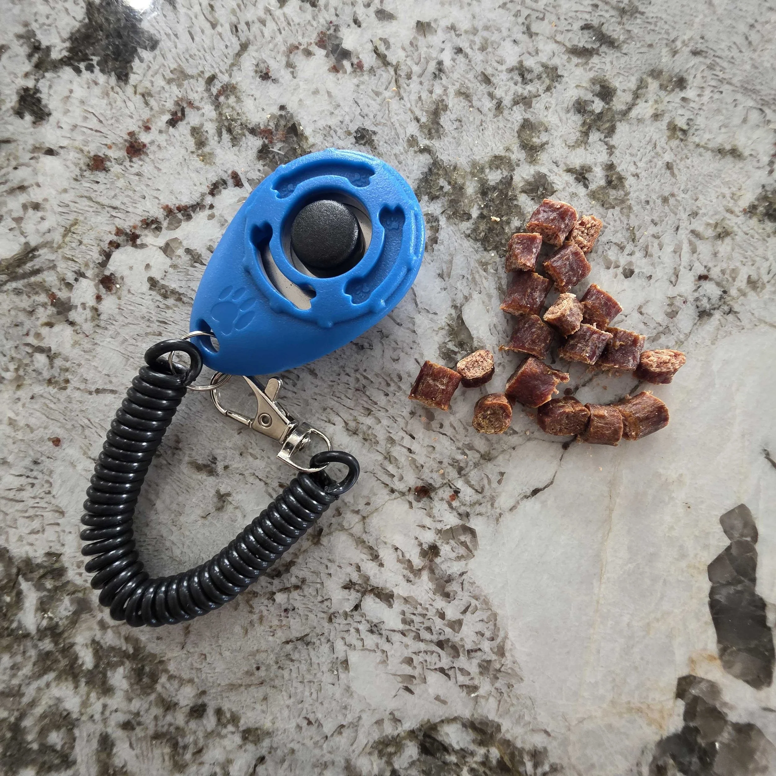 When your dog first hears the clicker, it means nothing. So the first job is to make the click a signal that says, "Good job—treat is coming!" This is called loading or charging the clicker.